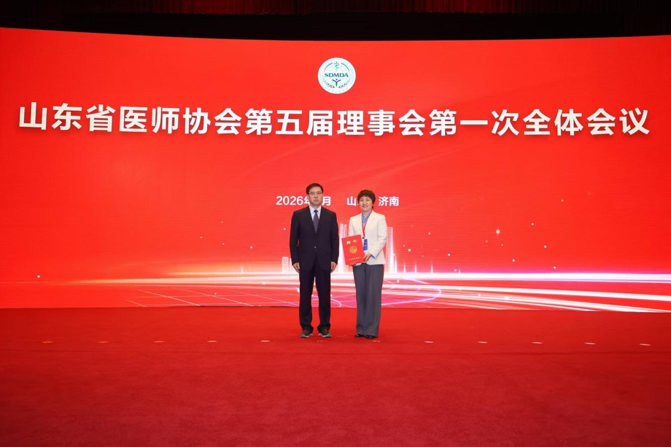 柳丽华会长作表态发言,充分肯定以孙洪军同志为会长的第四届理事会取得的卓越成绩。代表新一届理事会向各位理事和关心支持协会工作的各级领导、社会各界致以诚挚感谢,向全省守护齐鲁人民群众健康的40万名医师表示崇高敬意。结合“十五五”时期医疗卫生行业发展和深化健康山东建设新要求,紧扣协会宗旨,她提出新一届理事会将坚持以文化人,努力在铸魂上下真功,持续擦亮山东医师的儒医底色;坚持以技强身,努力在赋能上出真招,全力筑牢山东医师的核心能力;坚持以爱暖心,努力在兜底上见真情,切实当好山东医师的坚强后盾,全力将山东省医师协会建设成为具有儒医特色、齐鲁风格、全国一流的社会组织样板,打造一个有温度、有力量、有尊严的医师之家,奋力开创山东省医师协会事业发展新局面,为建设健康山东、增进人民福祉作出新的更大贡献。