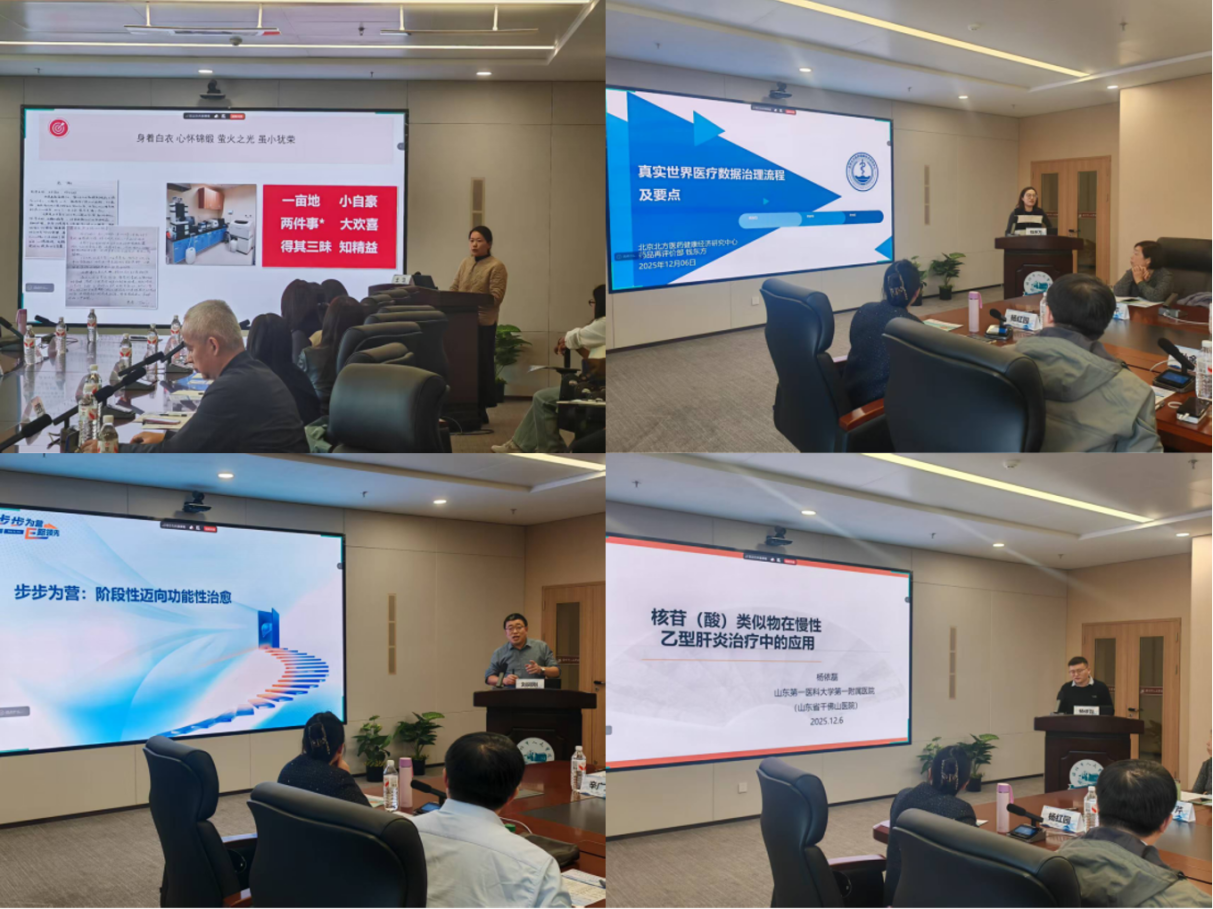 专题讲座环节,由省内多名知名药学专家主持,多位国内知名专家带来了精彩的学术分享:北京长庚医院王兰教授就“治疗药物监测实践与思考”进行专题报告,深入探讨将实验室数据转化为临床行动,其价值不仅依赖于准确检测,更取决于结合患者全面情况的综合判断;淄博市中心医院司继刚教授介绍了该院药学门诊高胰岛素血症患者的药物治疗管理的方法;北京医药健康经济研究中心钱东方教授梳理了“真实世界医疗数据治理流程及要点”让大家了解数据的处方新方法;山东第一医科大学第一附属医院杨依磊教授则围绕“核苷(酸)类似物在慢性乙型肝炎治疗中的应用”展开讲解,内容详实,贴近临床;最后由滨州医学院附属医院刘同刚教授分享了“步步为营-阶段性迈向功能性治愈”,从临床角度介绍了慢乙肝患者临床治愈的新途径与方法。