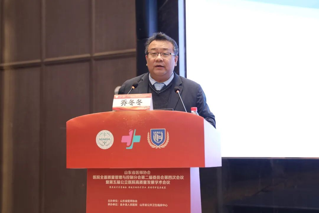 12月6日,由山东省医师协会主办,山东省公共卫生临床中心、金乡县人民医院承办的“山东省医师协会医院全面质量管理与控制分会第二届委员会第四次会议暨第五届公立医院高质量发展学术会议”在金乡建国饭店成功召开。中国医师协会副会长、清华大学医院管理研究院常务副院长张宗久,中国医师协会副会长、山东省医师协会会长孙洪军及国内知名医疗健康管理专家、省内外各级医院书记院长、医院管理者共300余人齐聚金乡,共商共讨管理实践良策,集思广益优化服务模式,凝心聚力共促改革创新,助力全省公立医院实现高质量发展。