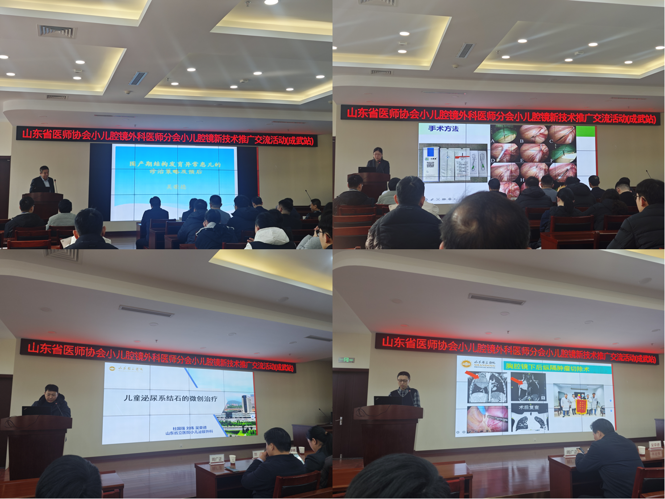 学术交流环节,分会主任委员、山东第一医科大学附属省立医院小儿外科吴荣德、成武县人民医院纪委书记周广正应邀出席活动现场并分别致辞。分会成员、省立医院小儿外科专家结合临床实践与学科前沿,围绕“小儿腹腔镜微创技术规范化操作”“儿童常见畸形腔镜治疗新进展”“小儿外科围手术期管理”“基层医院小儿腔镜手术”等核心课题开展专题授课,同步结合典型病例展开深度剖析与互动答疑。成武县及菏泽周边县域医疗机构的小儿外科、普外科、麻醉科骨干医师参会学习,现场学术氛围浓厚。与会医师纷纷表示,讲座内容紧贴基层临床实际,兼具理论高度与实操指导性,有效填补了县域小儿腔镜技术应用的知识短板,为后续规范开展儿童微创手术、提升专科服务能力提供了有力支撑。