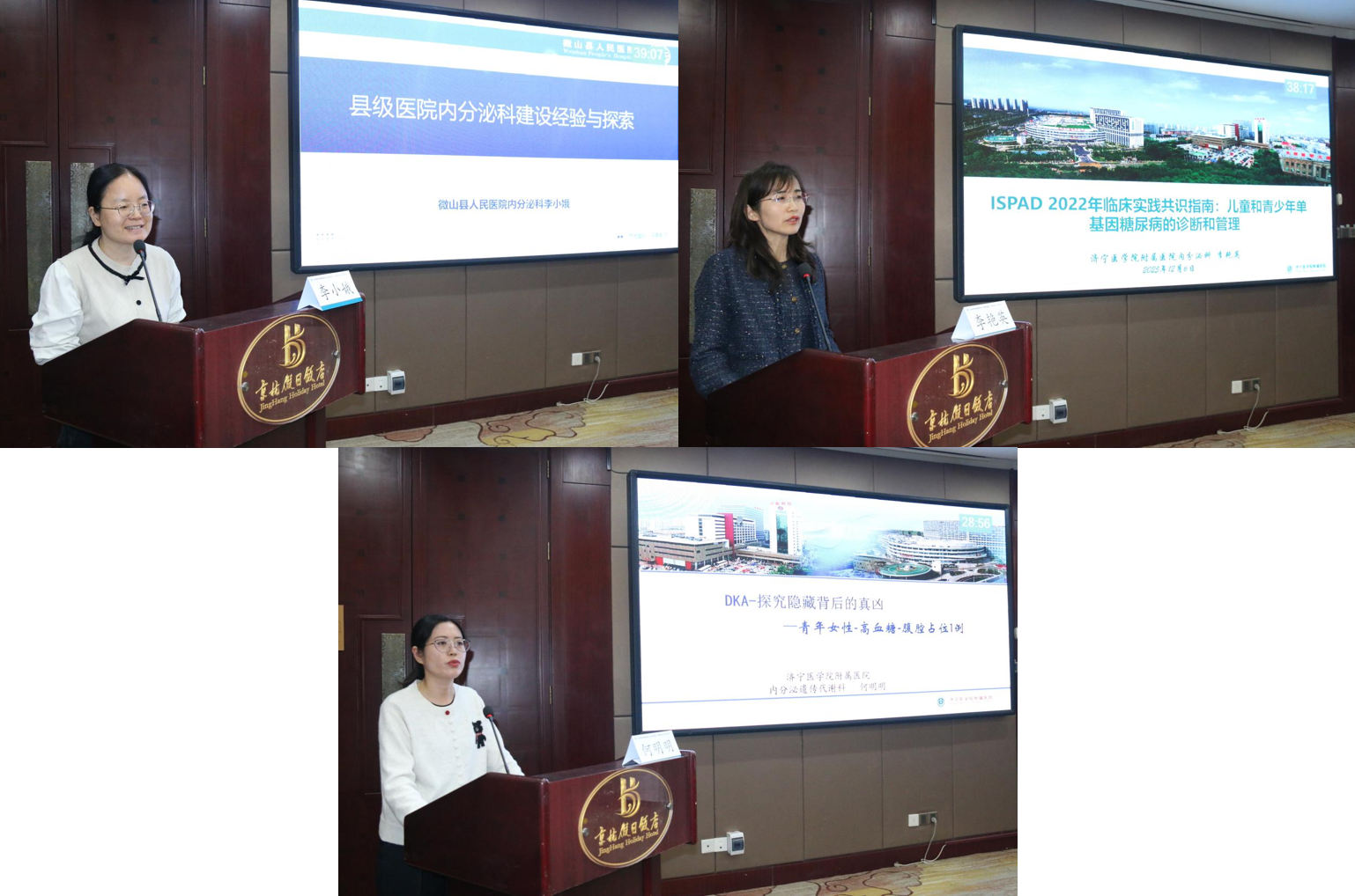 病例分享环节,微山县人民医院李小娥教授系统展示了科室近年来在原醛症、嗜铬细胞瘤、线粒体糖尿病、肢端肥大症、胰岛素瘤等多种肾上腺及内分泌疑难罕见病诊断与治疗中的实践案例。济宁医学院附属医院李艳英教授通过一例复杂的14岁Alstrom综合征病例切入,系统梳理了单基因糖尿病的临床特征与诊断思路。济宁医学院附属医院何明明教授分享了一例以糖尿病酮症酸中毒(DKA)起病的青年女性疑难病例的诊疗过程。通过此病例,系统剖析了嗜铬细胞瘤导致高血糖及心肌损伤的病理生理机制,并展示了充分的α受体阻滞剂术前准备、多学科协作手术及术后激素与血糖显著改善的完整诊疗过程。