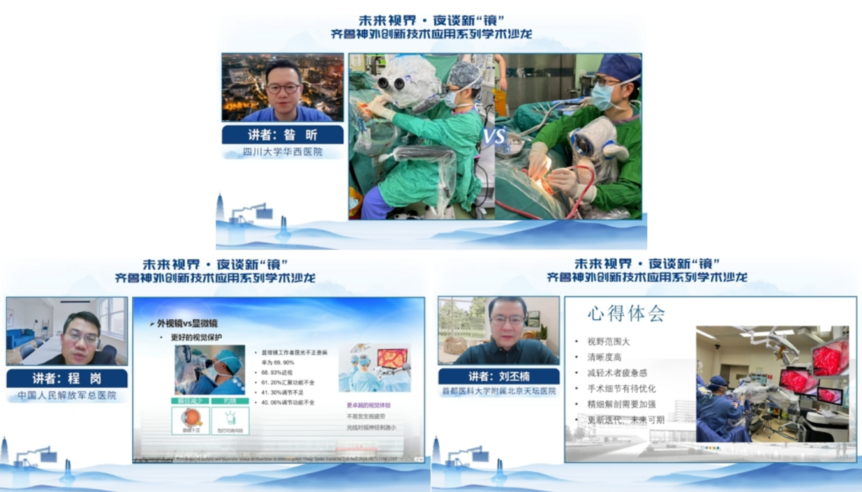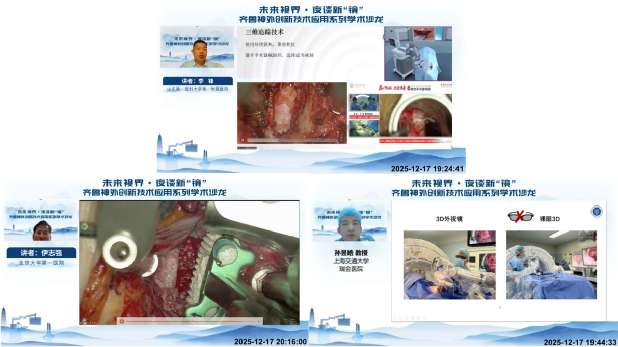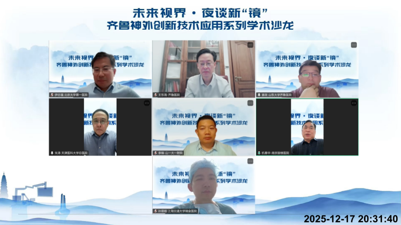 12月3日,由山东省医师协会神经介入专业委员会主办,山东大学齐鲁医院承办的未来视界·夜谈新“镜”创新技术应用系列学术沙龙以线上形式成功举办。活动历时三周,分别以“脑血管”“颅底肿瘤”“神经脊柱”为主题,汇聚了国内神经外科领域的顶尖专家学者,围绕3D数字外视镜技术在神经外科微创手术中的创新应用、实践经验与未来前景,展开了深度、务实且富有前瞻性的研讨,在业内引起了热烈反响。