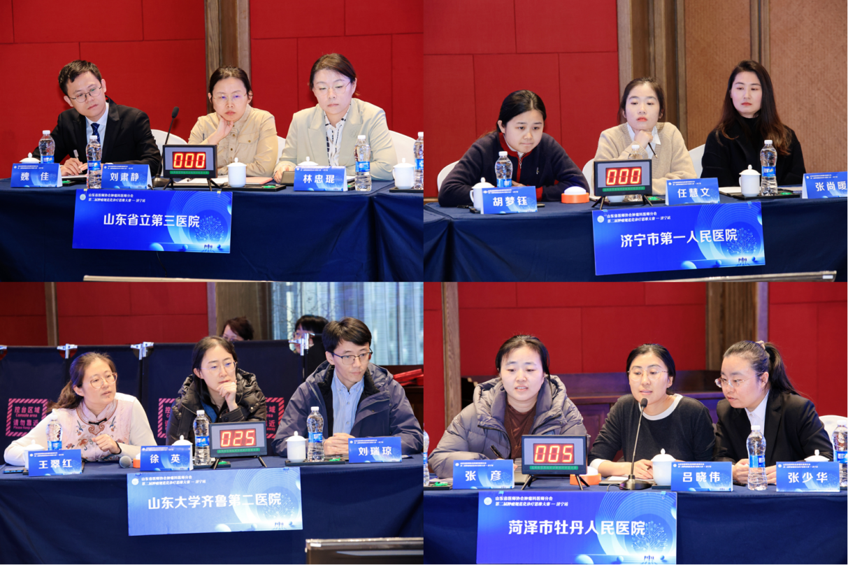 大赛由分会主任委员、山东省立医院杨哲教授、山东省立第三医院孙亚红教授、济宁市第一人民医院赵海波教授共同担任大会主席并分别致开场辞。来自山东大学齐鲁第二医院、山东省立第三医院、济宁市第一人民医院、菏泽市牡丹人民医院的四支精英队伍同台竞技。赛事由吕婷婷教授主持,并汇聚了巩合义教授、韩慧教授、纪波教授、李强教授、李雪峰教授、刘方丽教授、申洪昌教授、孙宗文教授、武霞教授、叶兰教授等省内知名肿瘤学专家,组成强大的评审团,为比赛提供了权威、专业的指导与评判。